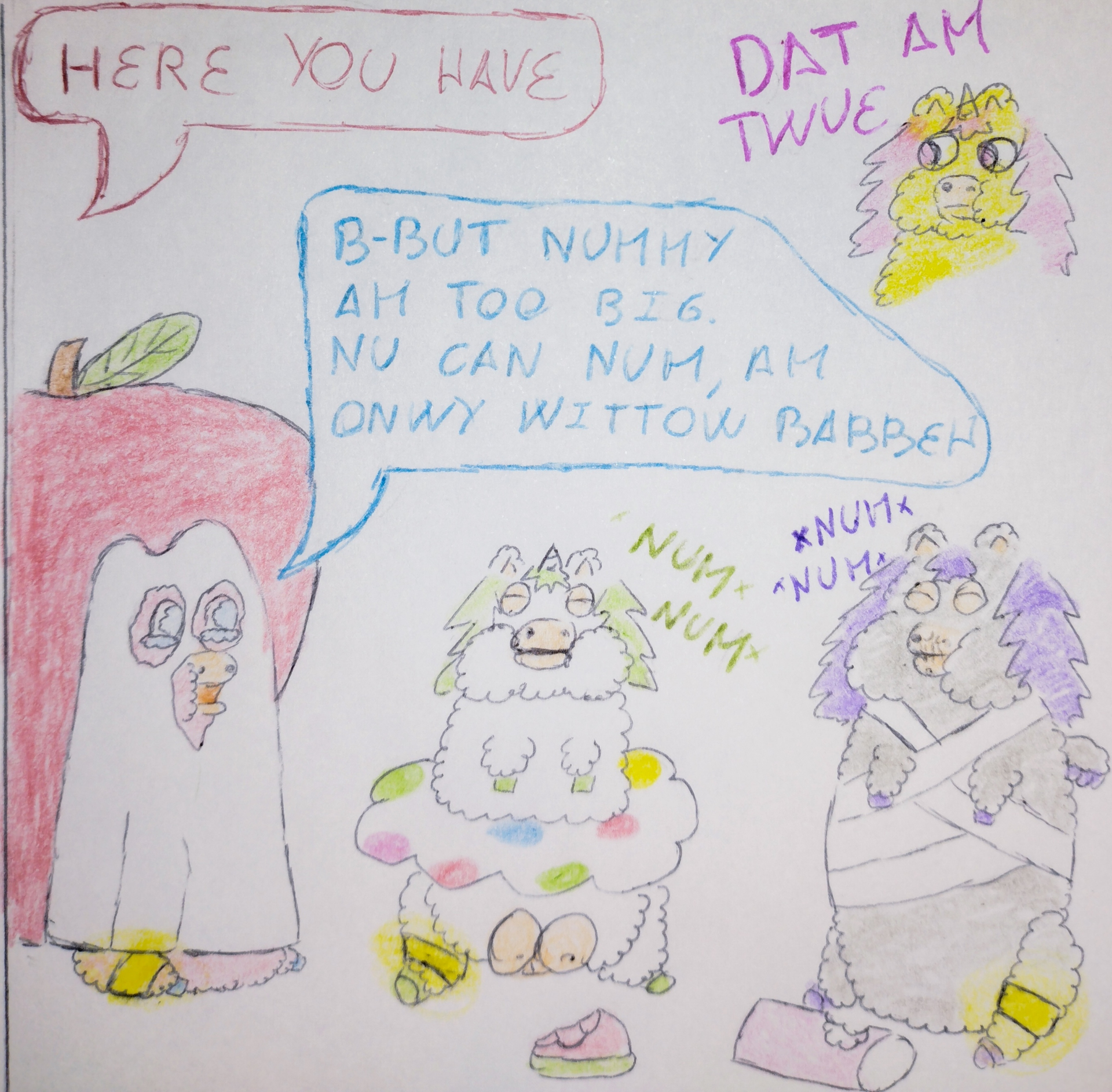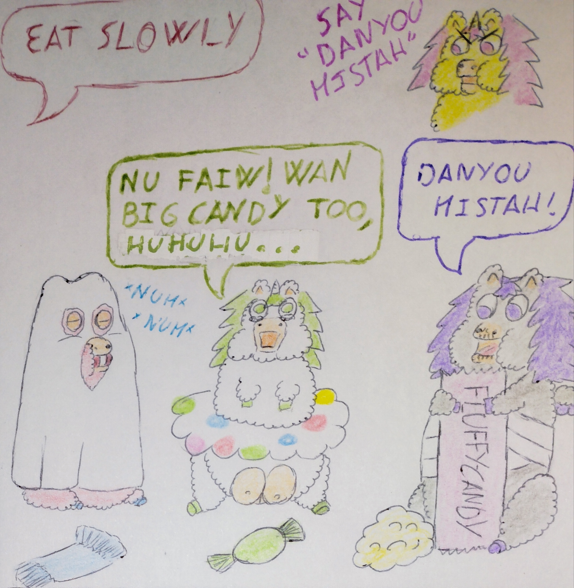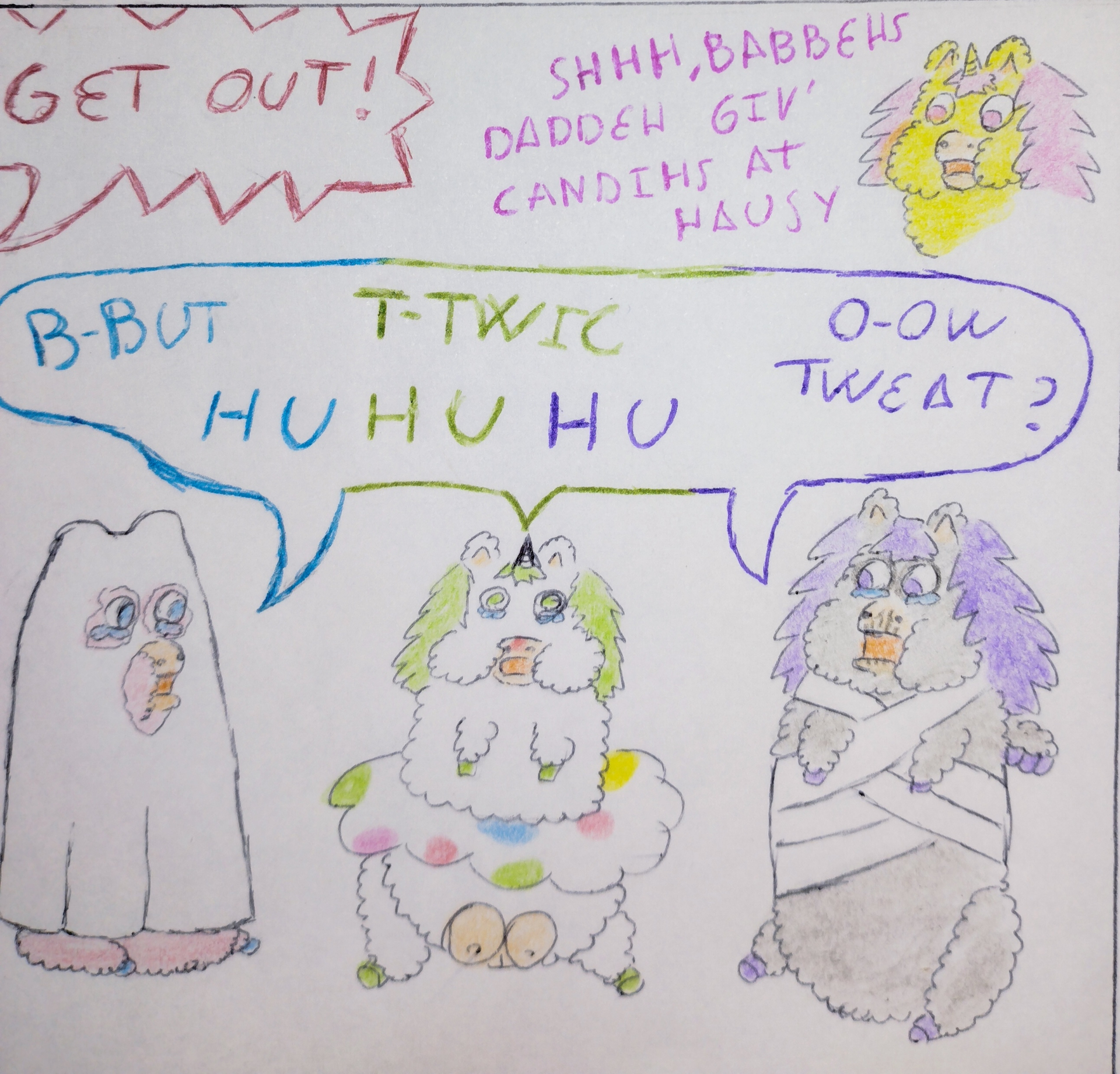 Omg love it! And all the variations too. Iād personally give the two on the left regular candy and the one on the right some kind of Carolina reaper spicy candy because I canāt stand the āAm onwy widdwe babyā line, lol.