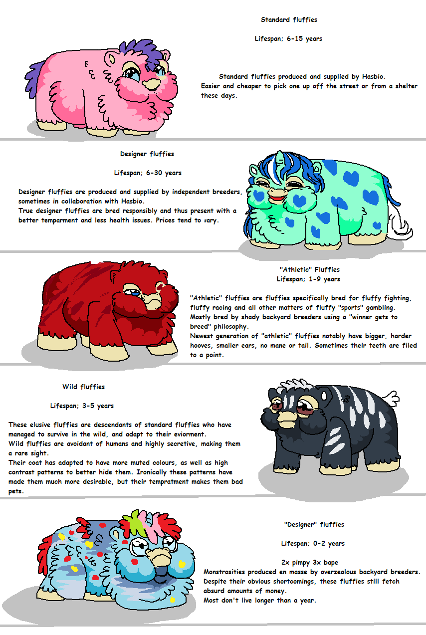 At least types of fluffies in my own personal fluffy hell, by no means an official guide to actual fluffy lore.