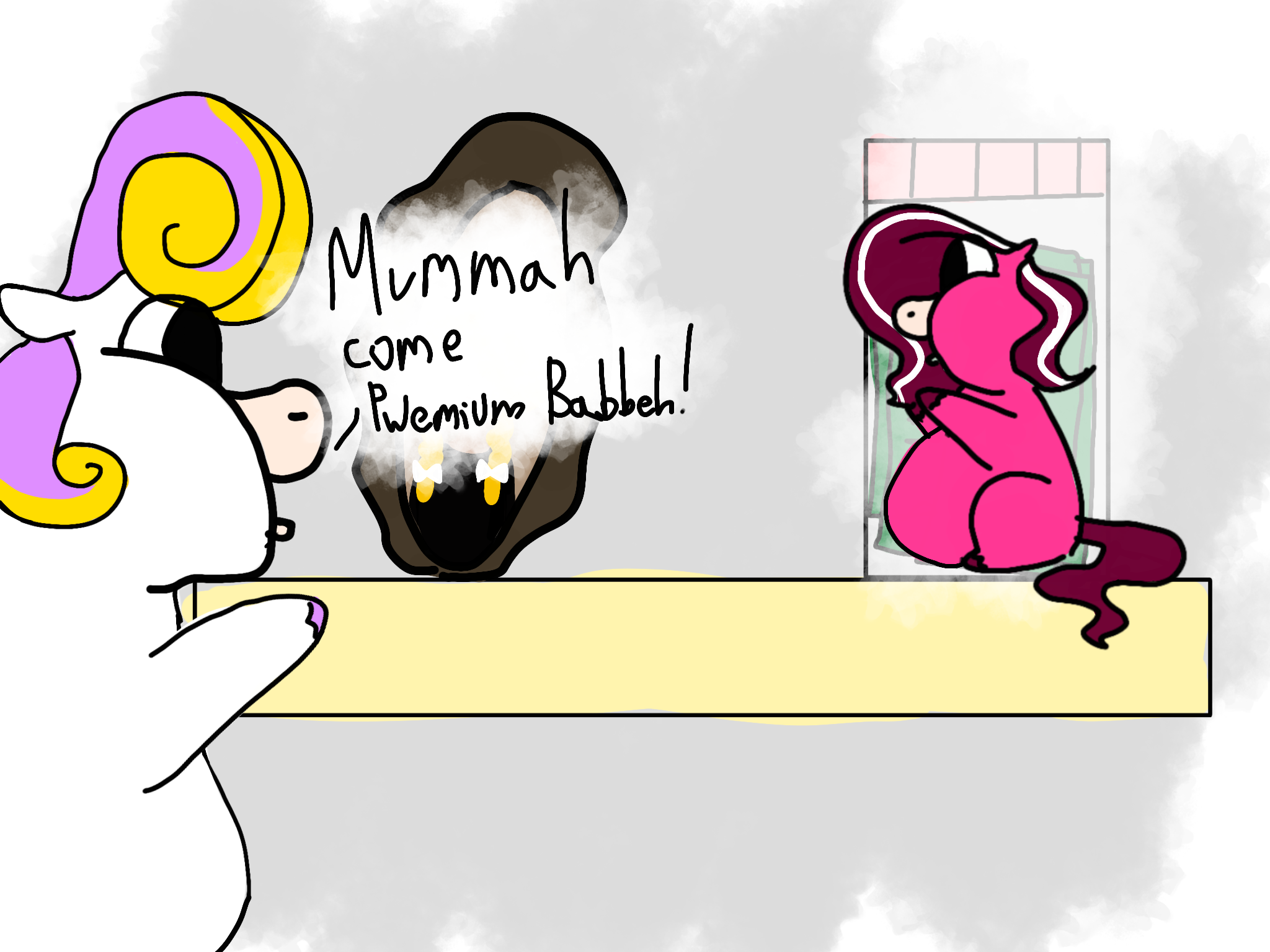 I’m wondering at which point it’s gonna blow up in her face. Maybe the Premium Kid is a spoilt little shit and Ungrateful here is stuck with it while Mum takes up caring for the brown foal.